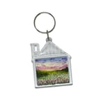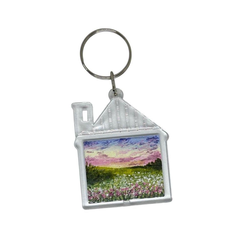 House shaped frame keyring featuring a hand painted original mini acrylic painting